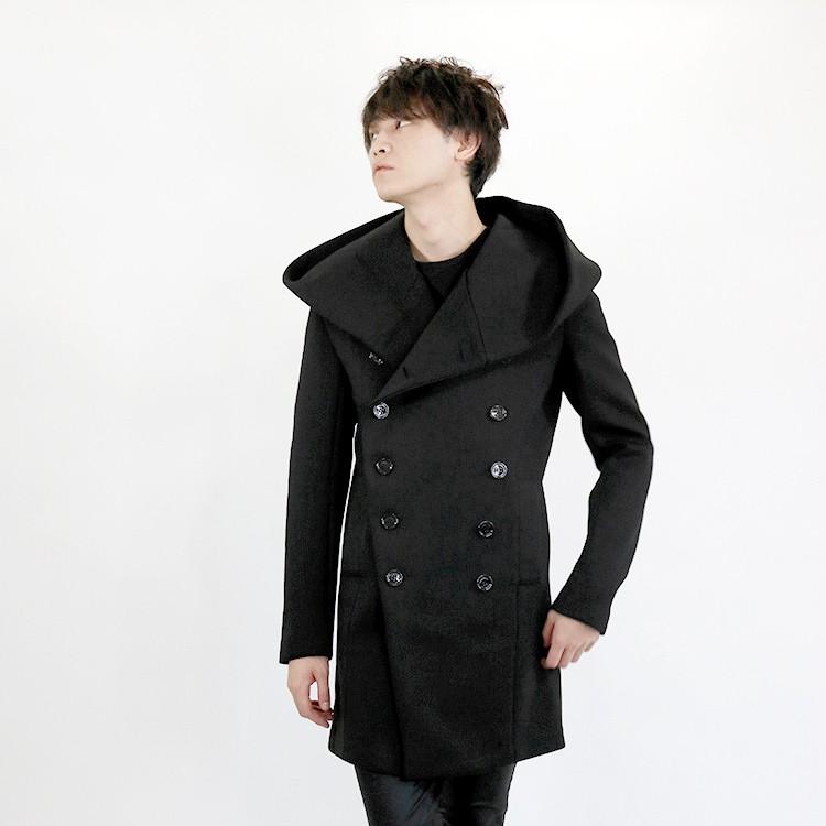 コート メンズコート ロングコート ビッグフード 多いボタン アウター メンズ ロング丈 黒 長袖 フード付き ブラック モード系 Amor 艶黒 Amormen Tops6264 Santasan 通販 Yahoo ショッピング